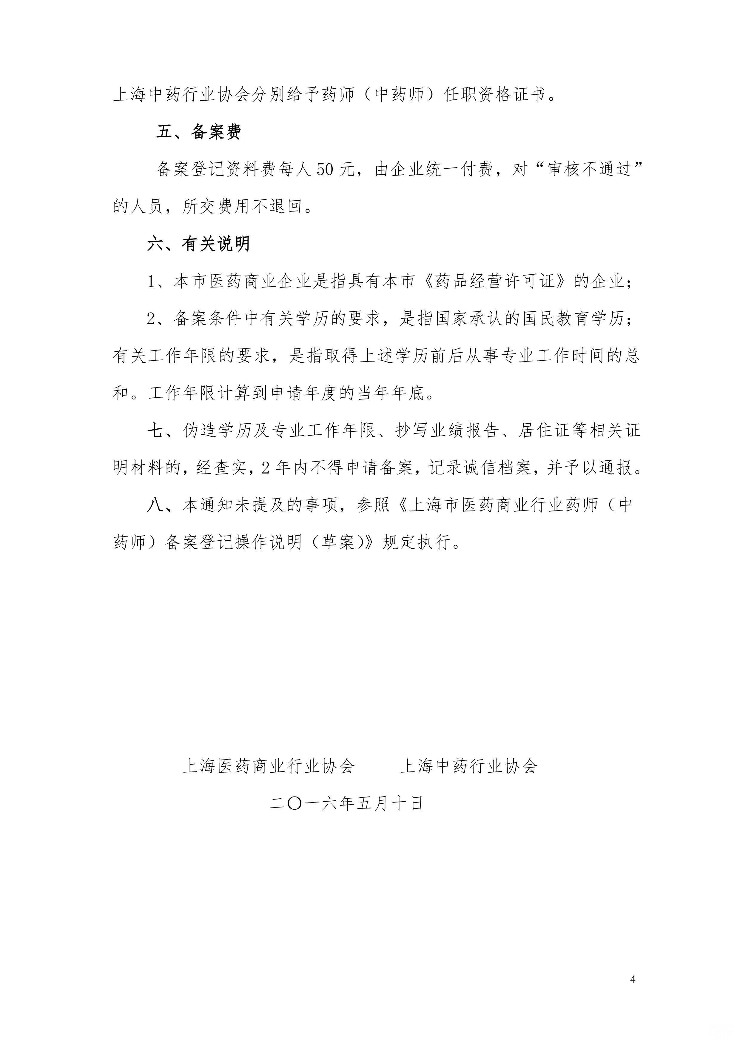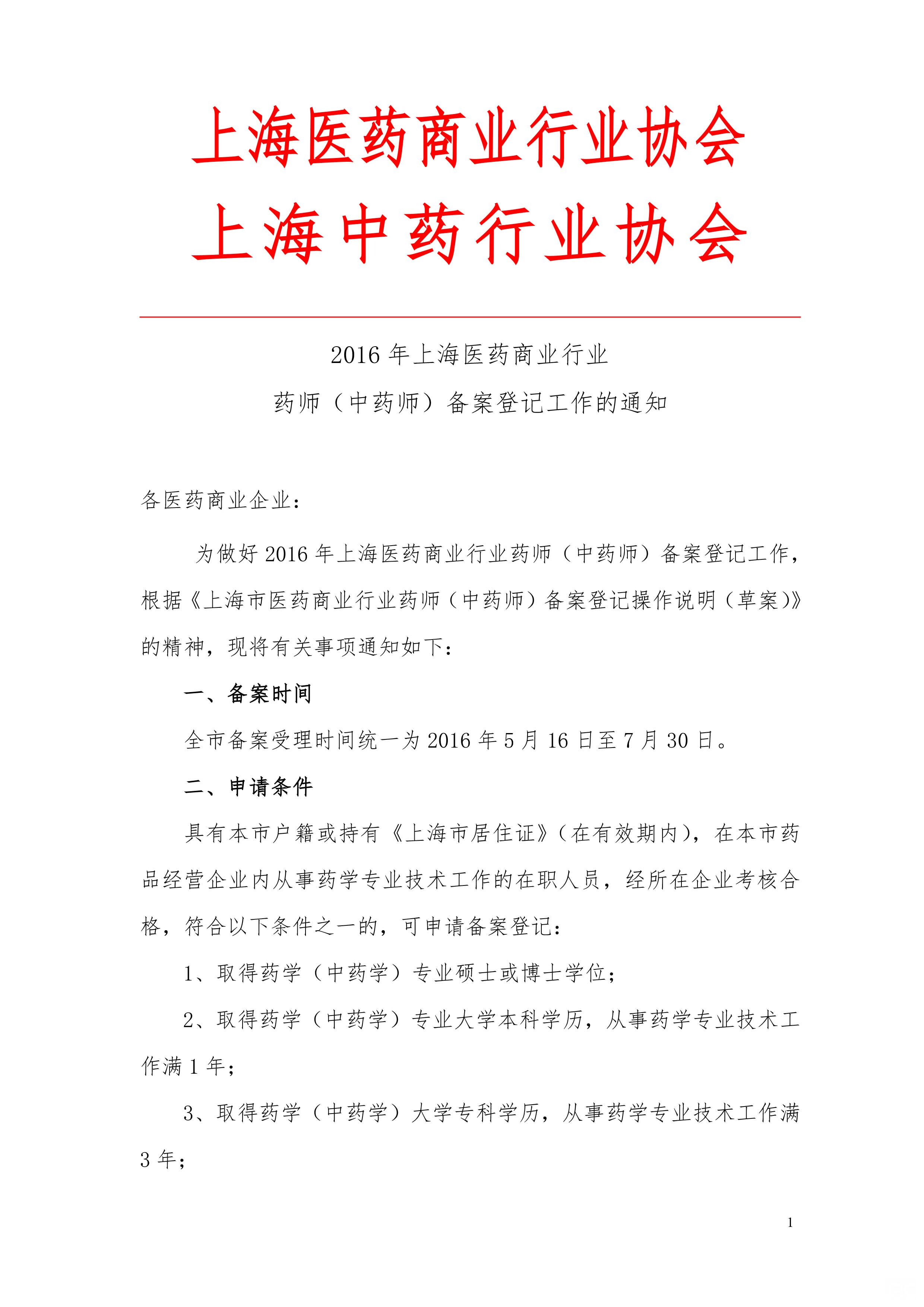 2016年上海医药商业行业药师(中药师)备案登记工作的通知