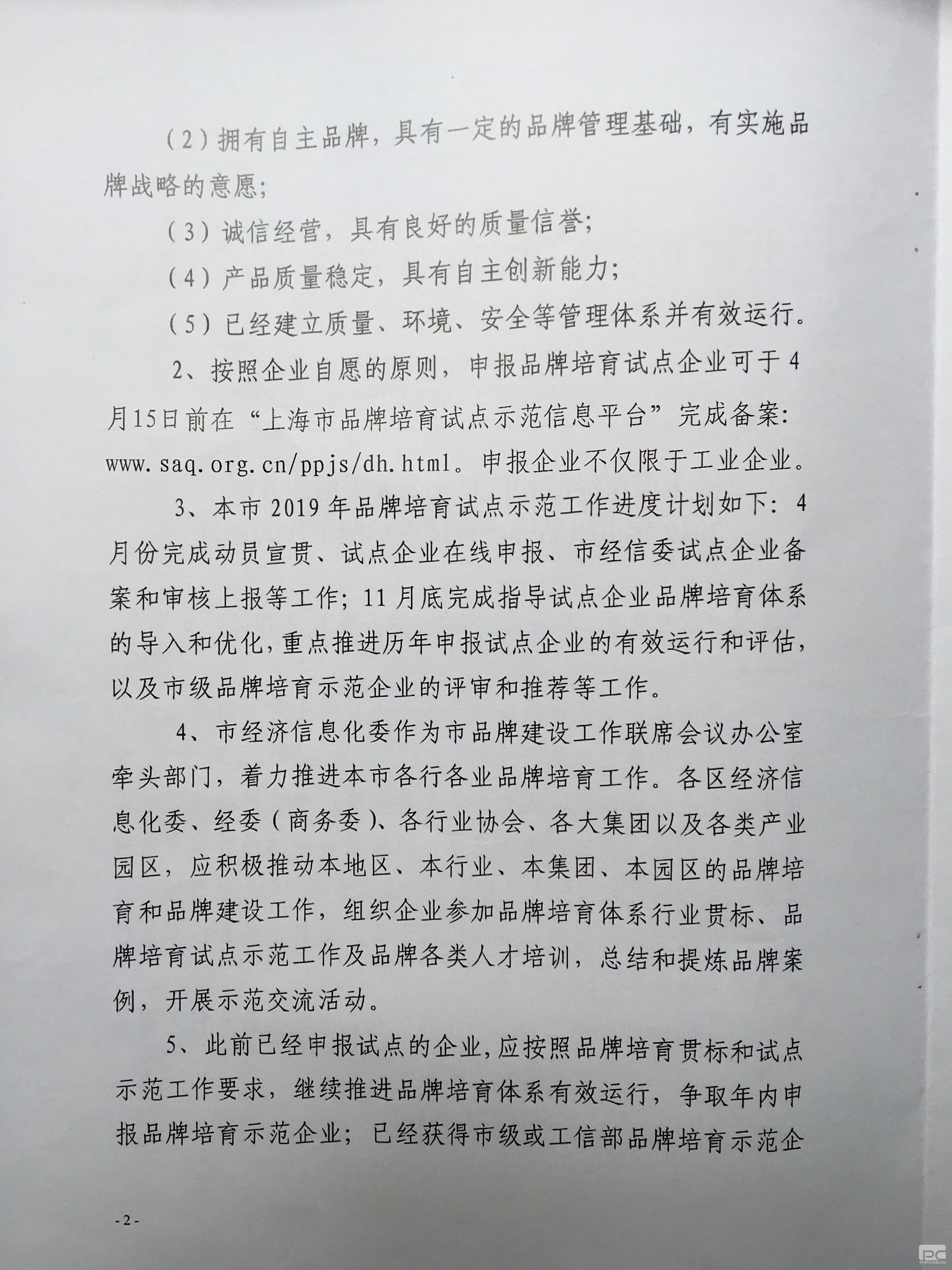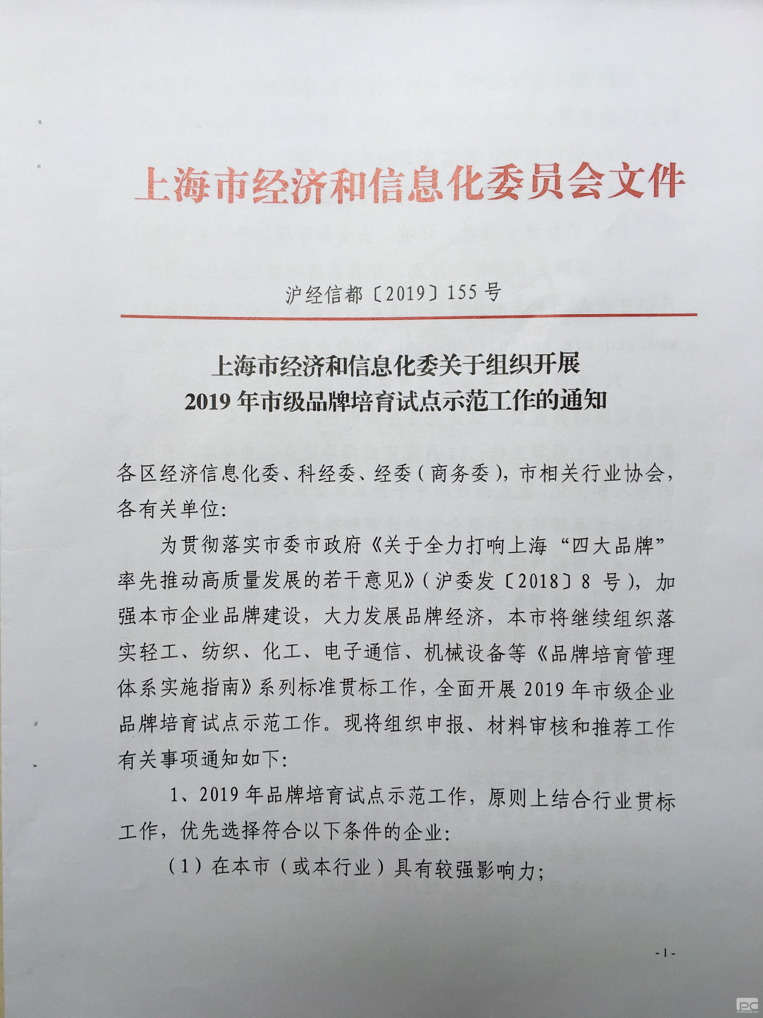 上海市经济和信息化委员会关于组织开展2019年市级品牌培育试点示范工作的通知
