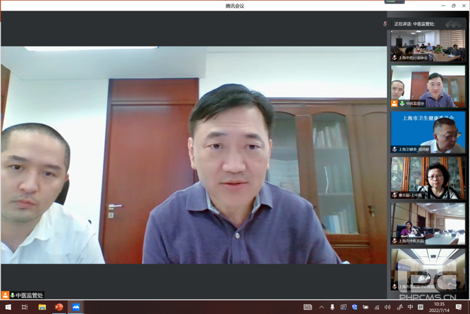 7月14日上午上海市中医药管理局召开溯源饮片试点供应工作推进视频会议,市卫健委副主任、市中管局副局长胡鸿毅、中医药服务监管处处长刘华、王文辉老师;市药监局药品监管处副处长梁晔;市中药药事质控组组长刘力;上海中医药大学炮制教研室主任董志颖;上海中药行业协会会长杨弘、副秘书长孙帆、徐鸿耀等以及试点医院分管院长、药剂科负责人;试点企业负责人、质量负责人等参加会议。