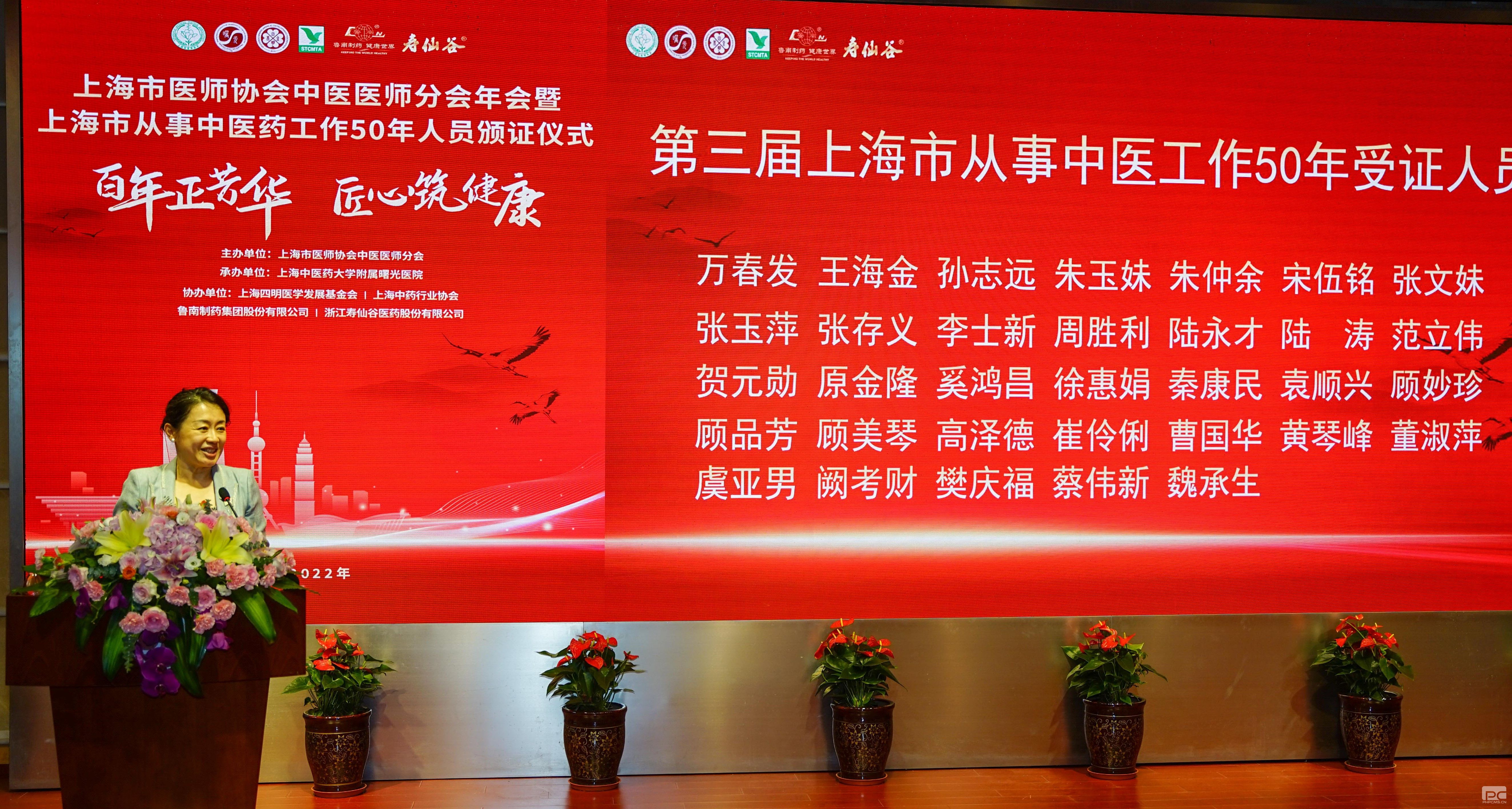 田红秘书长宣读了2022年度获得“上海市从事中医工作50年人员”荣誉证书的名单。