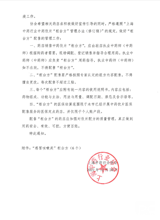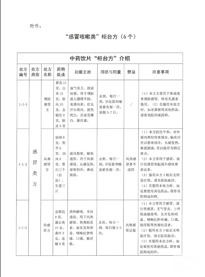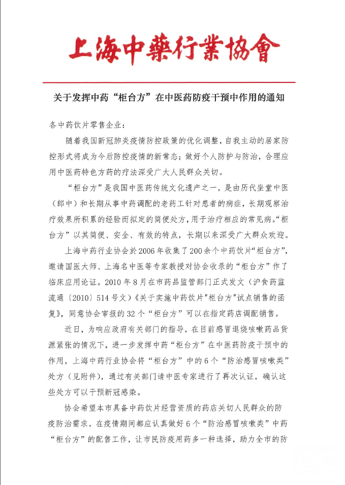 关于发挥中药“柜台方”在中医药防疫干预中作用的通知
