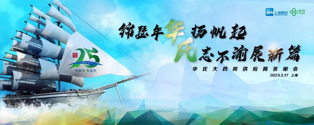 “锦瑟年华扬帆起,氏志不渝展新篇”——上海华氏大药房有限公司25周年庆暨供应商答谢会于3月17日圆满召开。上海中药行业协会会长张聪、秘书长孙帆及副秘书长徐鸿耀参加并与参会者齐聚一堂,共襄未来。