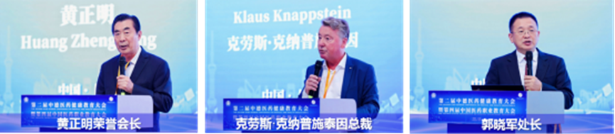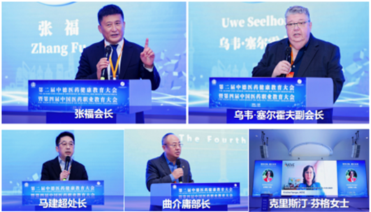 中国医药教育协会会长、联合国-国际生态生命安全科学院院士张福,中国医药教育协会副会长、中国医药教育协会职业技术教育专业委员会主任委员蒋忠元,上海市教育委员会职教处处长马建超,上海医药集团领导人员管理部部长、上海医药人力资源部总经理曲介庸,德国德中医学与健康教育交流协会副会长乌韦·塞尔霍夫,德国联邦教育和研究部职教国际处iMOVE负责人克里斯汀·芬格出席并致辞,上海中药行业协会职业教育负责人李保卫参加会议。