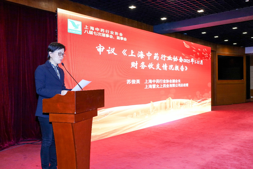 协会副会长、上海雷允上药业有限公司总经理苏俊英作《上海中药行业协会2025年1-11月财务收支情况报告》。