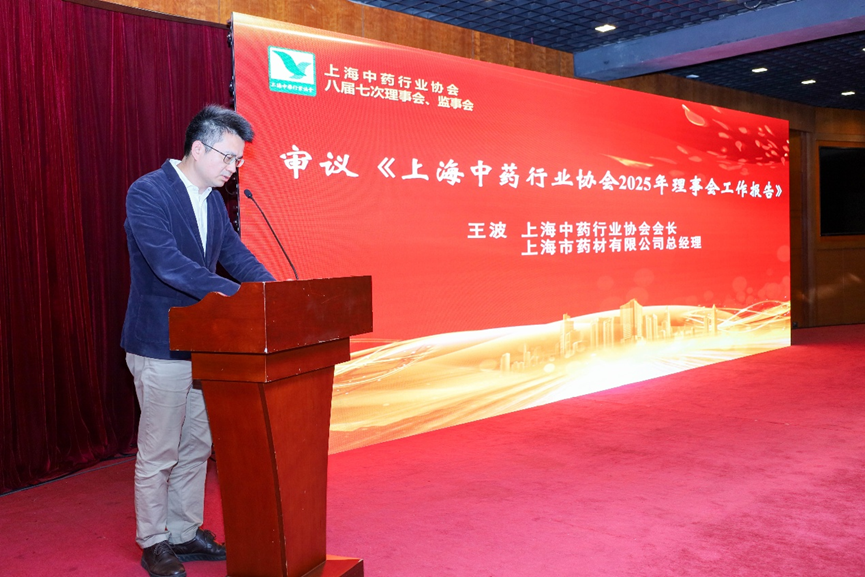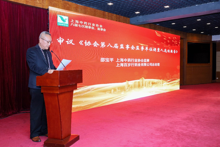 协会监事会监事、上海百岁行药业有限公司总经理邵宝平作《上海中药行业协会2025年监事会工作报告》,并宣读《协会第八届监事会监事单位调整人选的报告》。