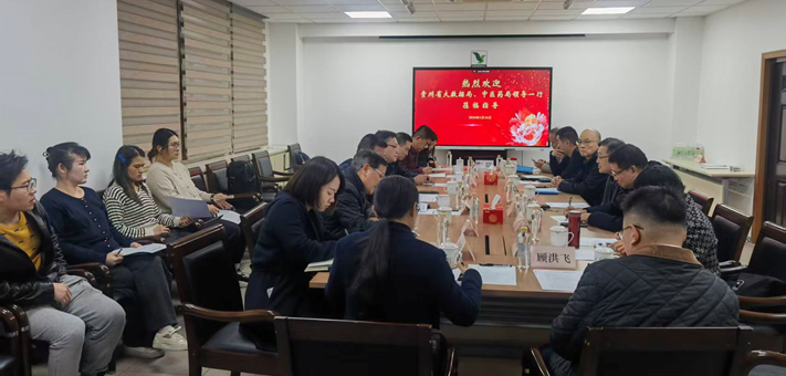 1月16日下午, 贵州省大数据局副局长张波、产业融合处副处长(主持工作)江永华,贵州省中医药管理局规财处三级调研员兰文跃,一行来访交流。上海市卫健委(市中医药局)二级巡视员刘华,安徽省中医药局副局长、上海市卫健委(市中医药局)挂职干部赵斌,上海市卫健委(市中医药局)一级主任科员王文辉,上海市中医质控中心中药药事质控组主任刘力,上海中药行业协会执行会长杨弘、秘书长孙帆,上海浦江数链数字科技有限公司总经理王虎、首席运营官刘永,上海信医科技有限公司董事长张少荣、(常务)副总裁尹华、(运营)副总裁涂晓莉;上海移动战略客户部副总经理顾洪飞及相关业务部门负责人等参加接待。