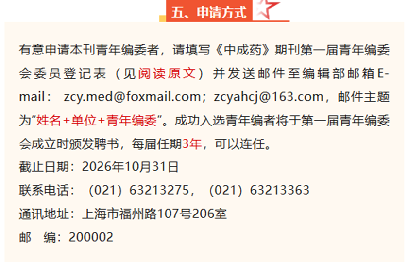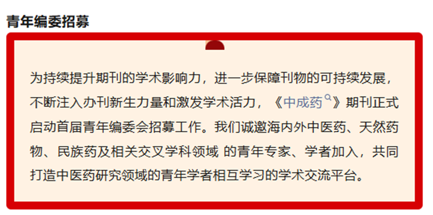 《中成药》期刊青年编委招募启事