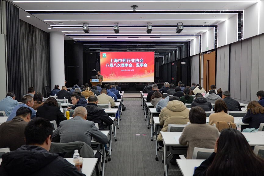 3月11日,上海中药行业协会在上药药材学术报告厅召开八届八次理事会、监事会。王波会长及执行副会长、副会长、理事、监事等近70人参加会议。