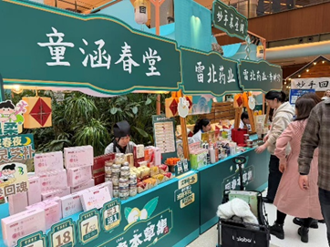 上海中药行业协会组织多家会员中药老字号品牌企业:上药神象、上药雷允上、雷允上北区、童涵春堂、国大复美/徐重道、龙虎、正官庄等参加本次集市活动。有中药本草养生概念的饮片、面包、糕点、茶饮、零食、文创等产品展销。上海雷允上北区诵芬堂中医药门诊部以及童涵春堂的医生则现场坐镇,通过免费四诊服务为市民提供个性化养生指导。同时,现场设有雷允上ai智能问诊专区,依托科技力量为消费者提供精准的养生建议与专属调理方案,让科学养生同样便捷可及。人和堂中药面包、大富贵与香山医院联名的“富贵·香山十二令”中药糕点,承载着古法智慧与现代口感的碰撞。