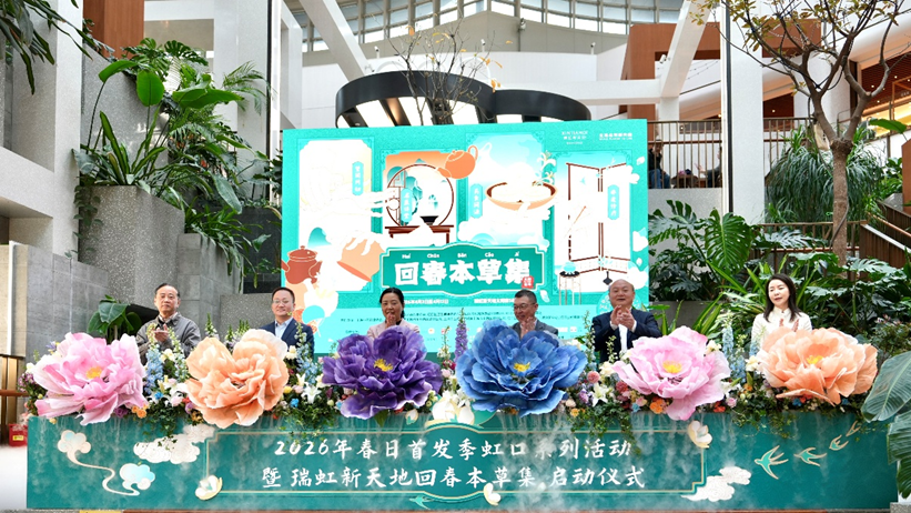 4月3日上午,“2026年春日首发季虹口系列活动”暨“瑞虹新天地回春本草集”启动仪式在瑞虹新天地太阳宫举行。本次活动由虹口区商务委、虹口区卫健委、虹口区文旅局(非遗办)、虹口区嘉兴路街道办事处指导,上海中药行业协会、上海中医药大学附属岳阳中西医结合医院、上海中医药大学附属上海市中西医结合医院、虹口区文化馆、虹口区融媒体中心为支持单位,瑞虹新天地主办。