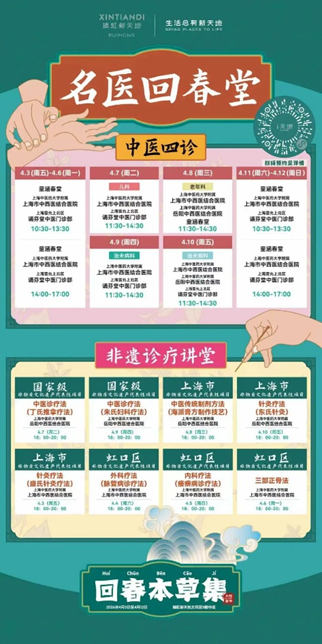 活动期间有权威坐镇名医回春堂,带来8大国家级、市级和区级的非遗中医的权威内容,让非遗诊疗走出殿堂,展示魅力。并提供免费的中医望闻问切四诊服务,为市民朋友们提供个性化的养生指导,在本草书集特色的妙手回春阁里,来自三甲医院的专家医师们将在现场提供推拿、耳穴敷贴等中医调理服务。希望让消费者朋友们在消费的同时,能够体验神奇的中医轻量化的理疗,为现代都市人舒缓疲惫,放松身心。快速回春作为回春本草集全新的亮点要食,同源坊将汇聚老字号、传统和新锐品牌的创意,带来中药面包、中药冰淇淋、中药咖啡和调酒等新锐尝试,将中药文化和传统消费以及日常休闲,让本草与传统美味跨前碰撞,同台展示经典产品,融入当代消费潮流,实现经典与潮流的双向奔赴。