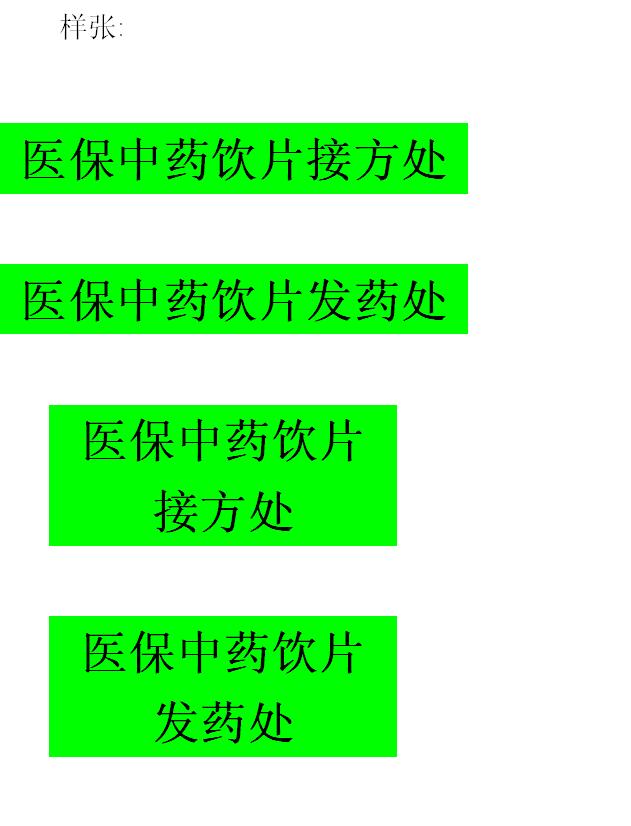 关于“医保中药饮片接方处”与“医保中药饮片发药处”,的标牌,具体尺寸由各企业自行设置并制作。制作要求: